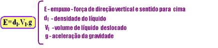 “Todo corpo parcialmente mergulhado num líquido em equilíbrio, recebe uma força dr direção vertical e sentido para cima denominada de Empuxo, cuja intensidade é igual ao peso do volume de líquido deslocado“