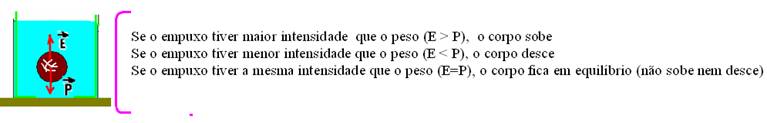 Observação: Se o corpo estiver apoiado no fundo do recipiente a balança indicará o peso do corpo mais o peso do sistema (recipiente + líquido).