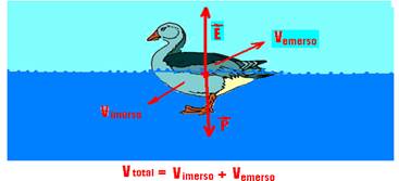 Se um corpo estiver flutuando parcialmente imerso num líquido, a forçã resultante sobre ele é nula (equilíbrio vertical)