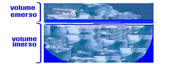 Flutuam porque quando a água líquida se congela, aumenta de volume e fica menos densa e, assim, como o gelo é menos denso que a água líquida, ele flutua nela. Suponha a densidade da água líquida dl=1,0.103kg/m3 e a densidade do gelo dg=0,9.103kg/m3 --- dg/dl=Vimerso/Vtotal --- 0,9.103/1,0.103=Vimerso/Vtotal --- Vimerso=0,9.Vtotal --- a parte emersa de um iceberg corresponde a aproximadamente 10% da parte total.