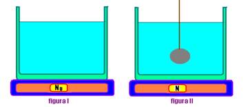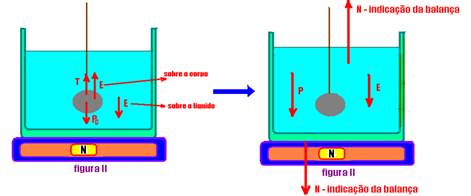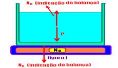 P – peso do conjunto (água + recipiente) --- Na figura I, a balança marca o peso P, ou seja No=P
